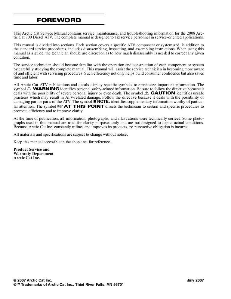 2008 Arctic Cat 700 Diesel Service Repair Manual