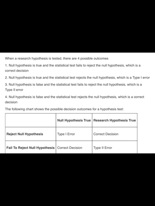 Make A Chart Of The Four Possible Correct And Incorrect Decisions In A Hypothesis Test
