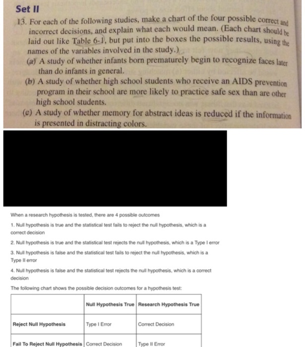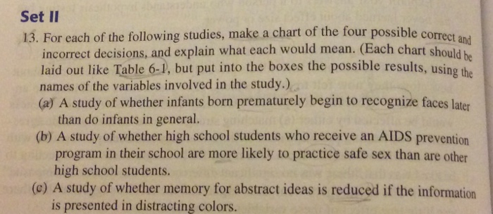 Set Ii 13 For Each Of The Following Studies Make Chegg Com