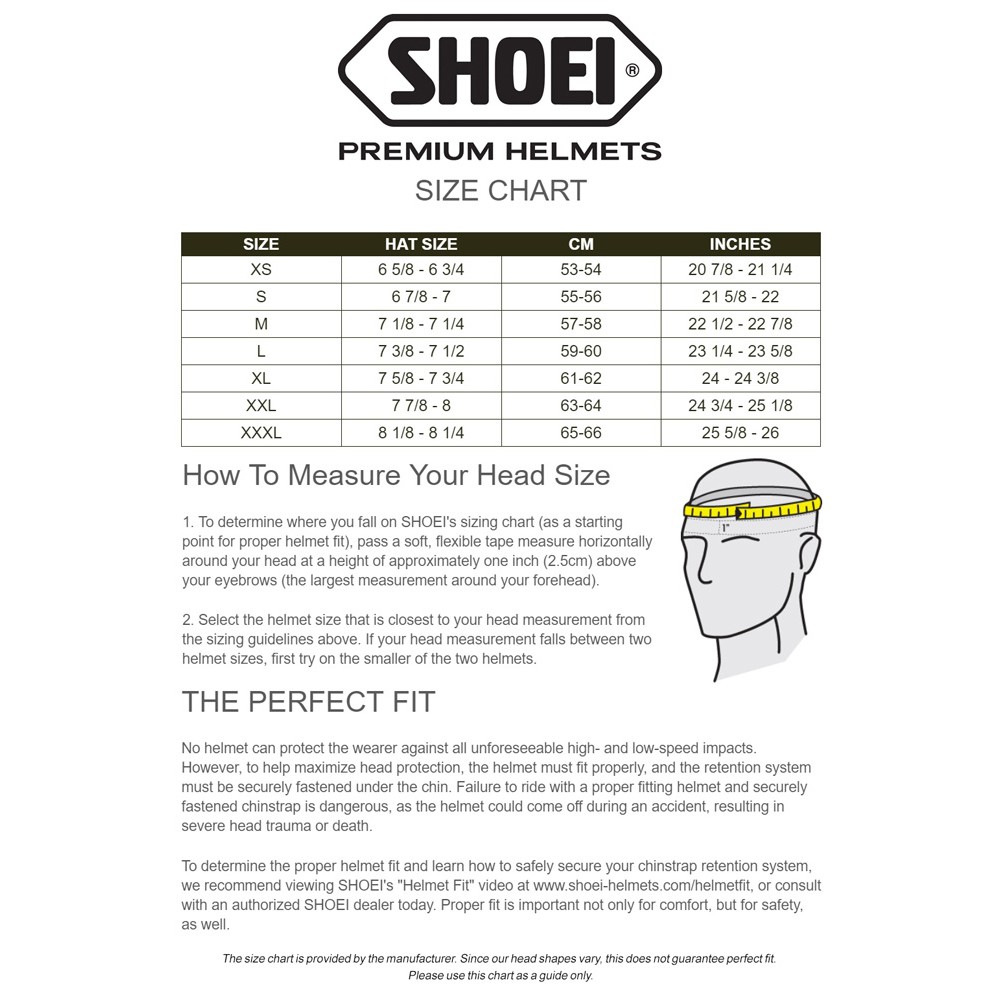 Shoei Helmet Sizes Chart