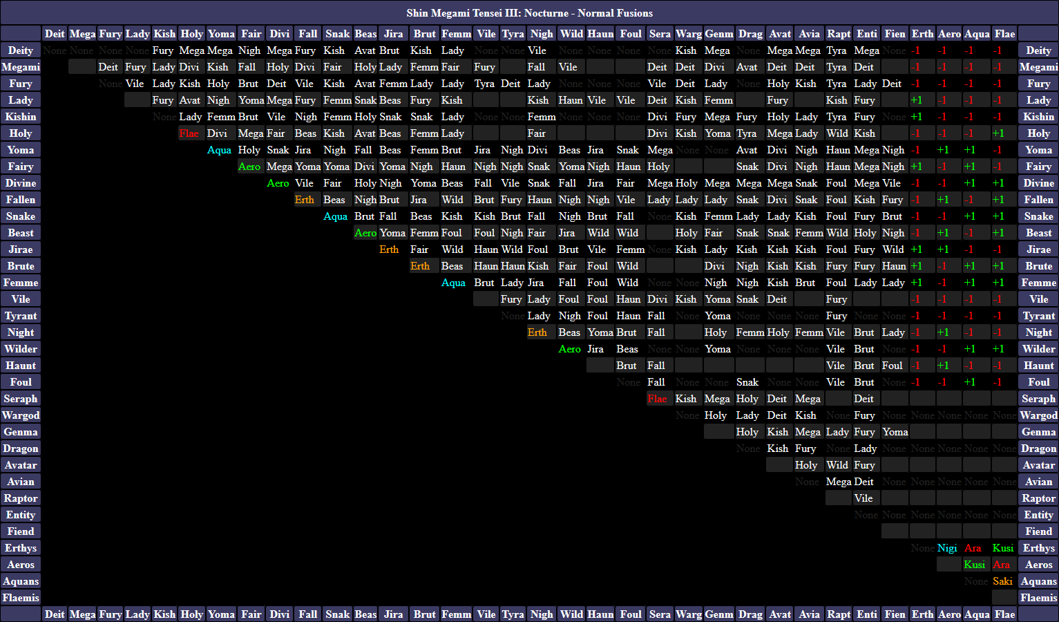 Shin Megami Tensei Strange Journey Redux Basic Fusion Chart Map