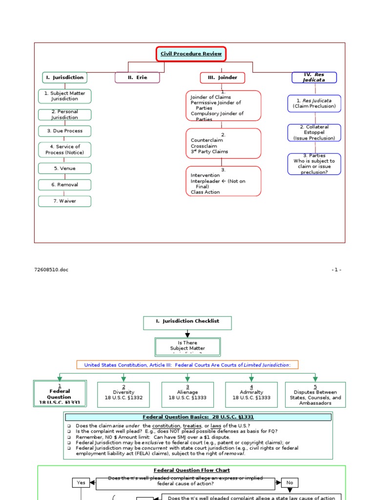 Civil Procedure Subject Matter Jurisdiction Flow Chart Civil